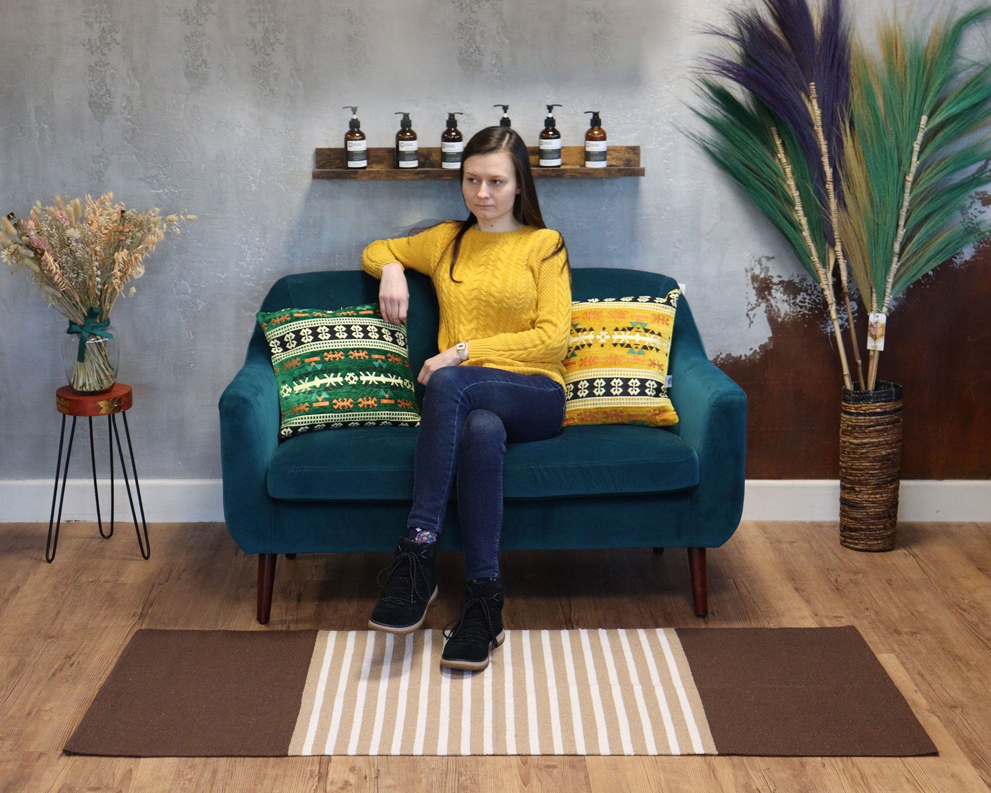 Indian Cotton Rug - 70x170cm - Dark Brown / Beige