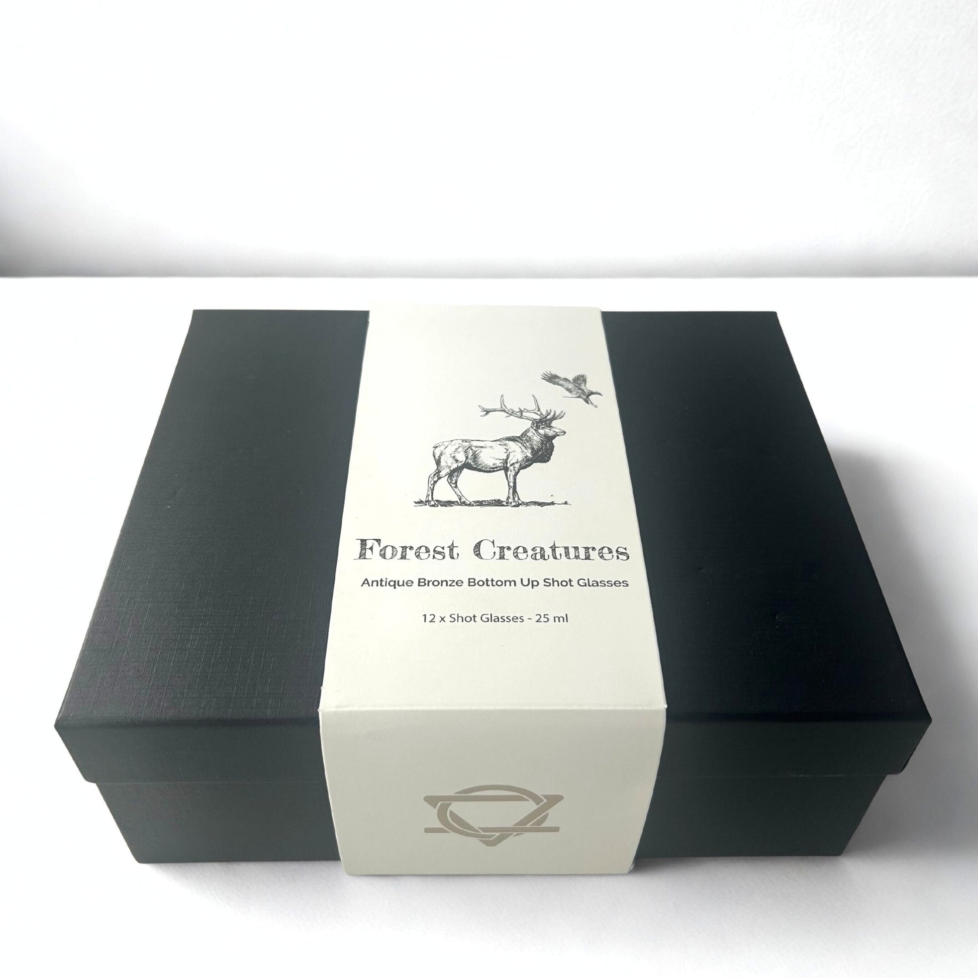 Gift Set of 12 Bottom Up Shot Glasses (25ml) - Forest and Mystical Creatures - Antique Bronze
