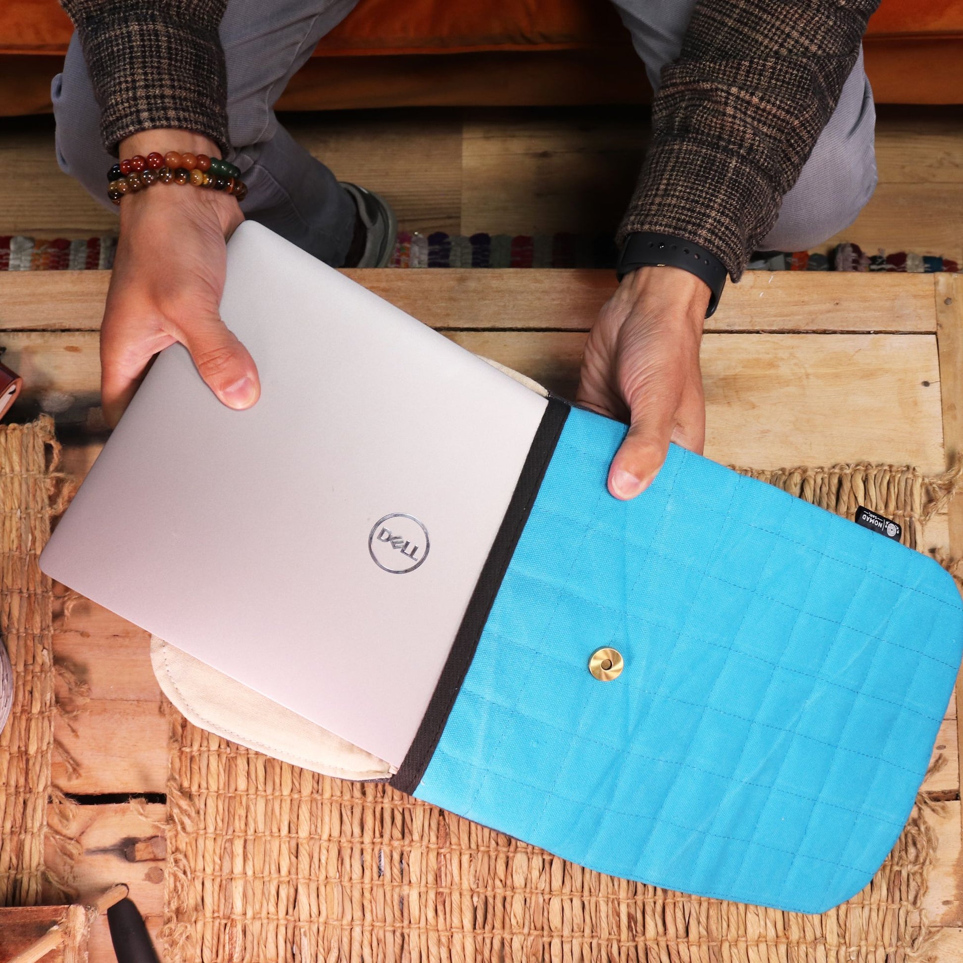 Bright, bold, and brilliantly functional, this Crazy Yellow Padded Laptop Bag is a statement piece with purpose! Handcrafted in India from durable 14 oz stonewashed cotton, it combines vibrant colors with a practical design to protect tablets and laptops up to 13" .