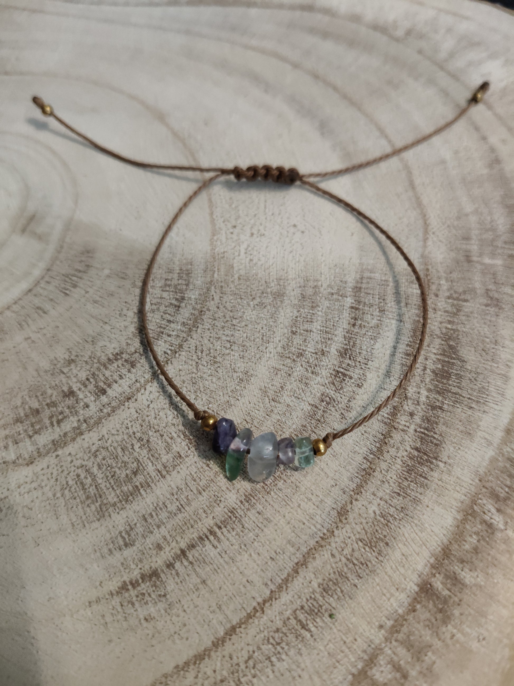 Bracelet with natural fluorite stone chips and sliding knot, you can adjust it according to the size of your wrist.