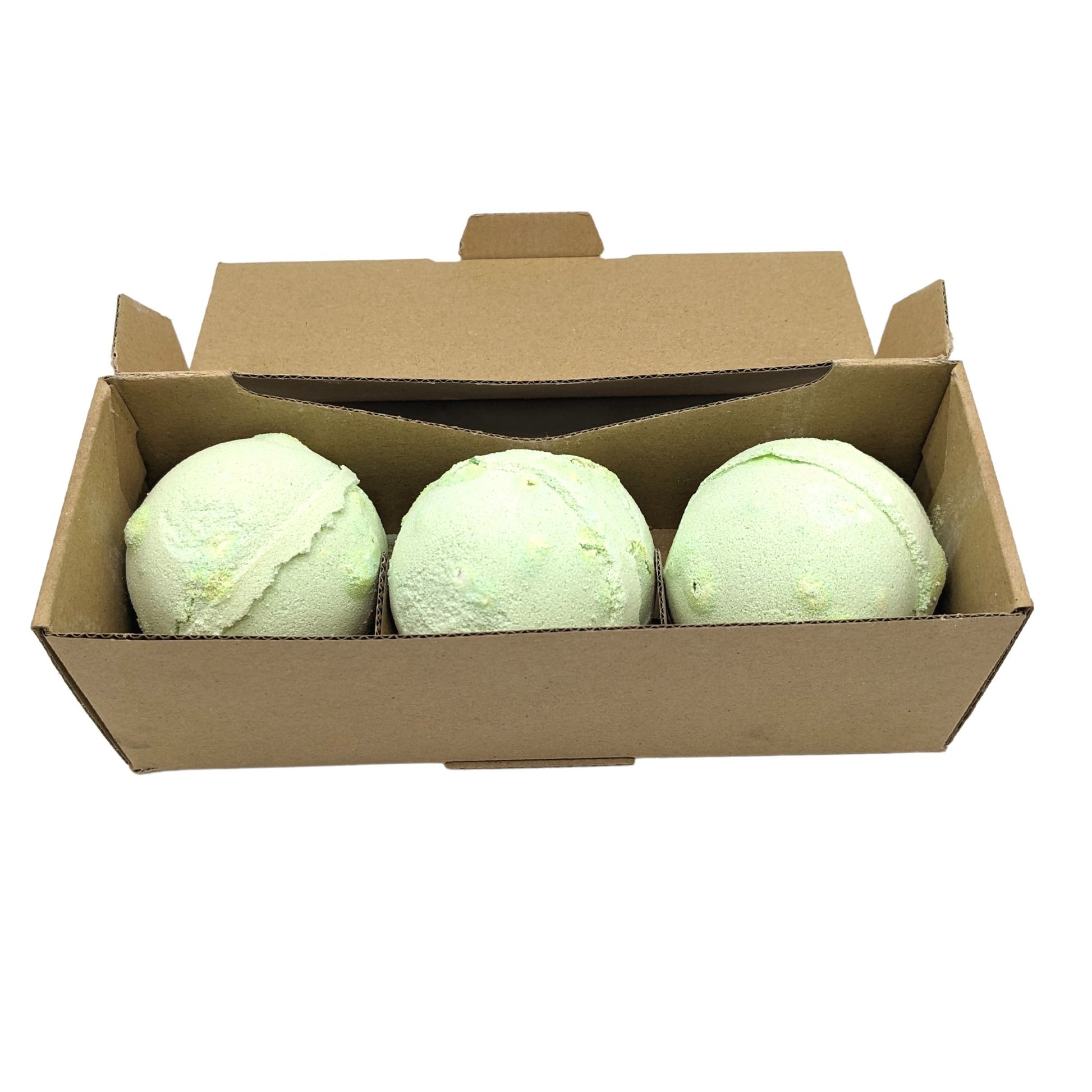 Cada bomba pesa 180 gramos y contiene una generosa porción de manteca de coco para suavizar su piel, con exfoliantes de jabón coloridos que ayudan a crear una espuma sedosa y limpiar el cuerpo mientras está teniendo una experiencia de baño tropical.