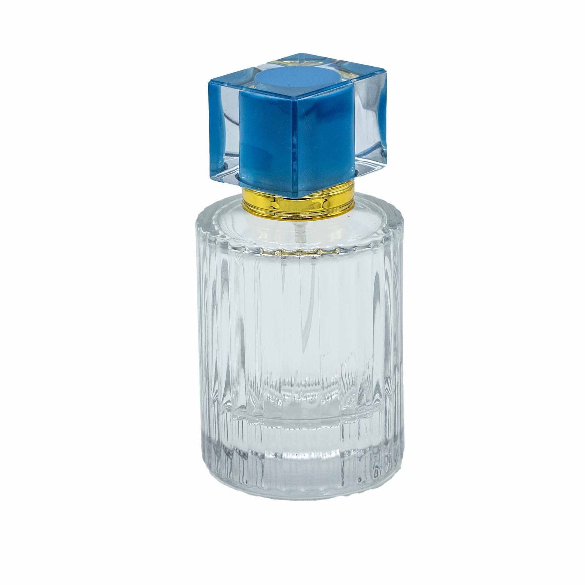 Flacons de parfum en verre avec vaporisateur et bouchon bleu, 50 ml