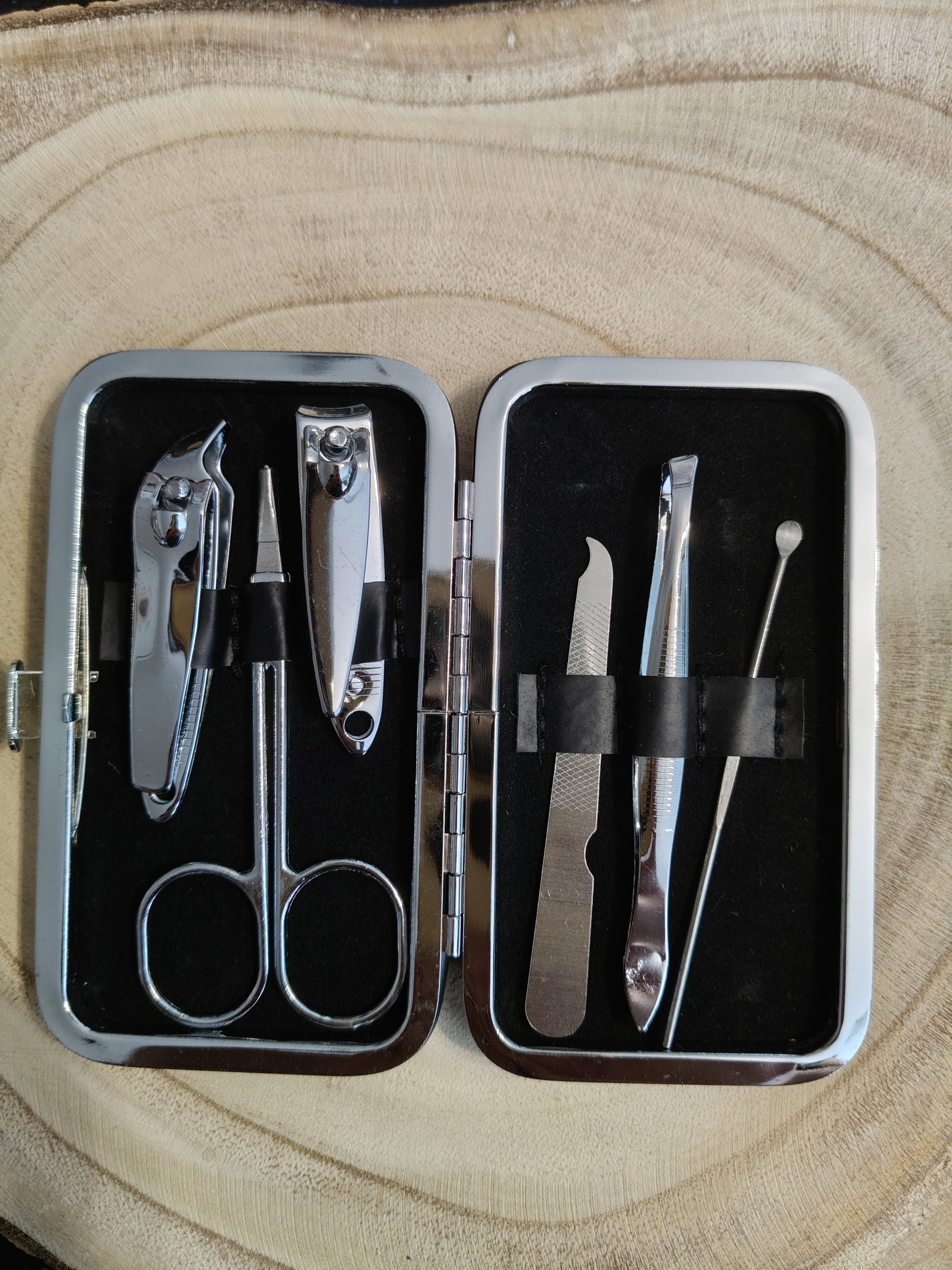 Le coffret comprend : une trousse de toilette, un porte-clés et un kit de manucure.