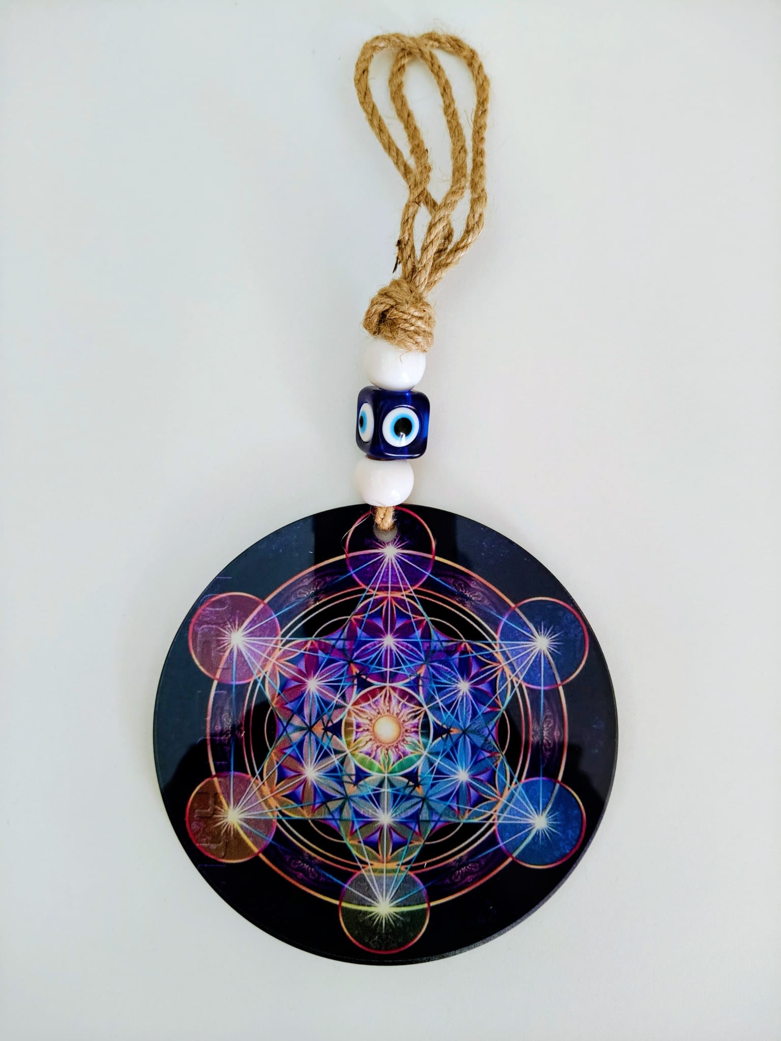 Este colgador de vidrio de 26x12 cm presenta el símbolo de Metatrón con un diseño elegante y detallado, ideal para aportar un toque de misticismo y sofisticación a cualquier espacio. Su estructura transparente resalta el significado espiritual del símbolo, mientras que su tamaño compacto lo hace perfecto para decorar paredes, ventanas o rincones especiales con estilo y armonía. Un elemento decorativo que fusiona arte y simbolismo en un acabado refinado.