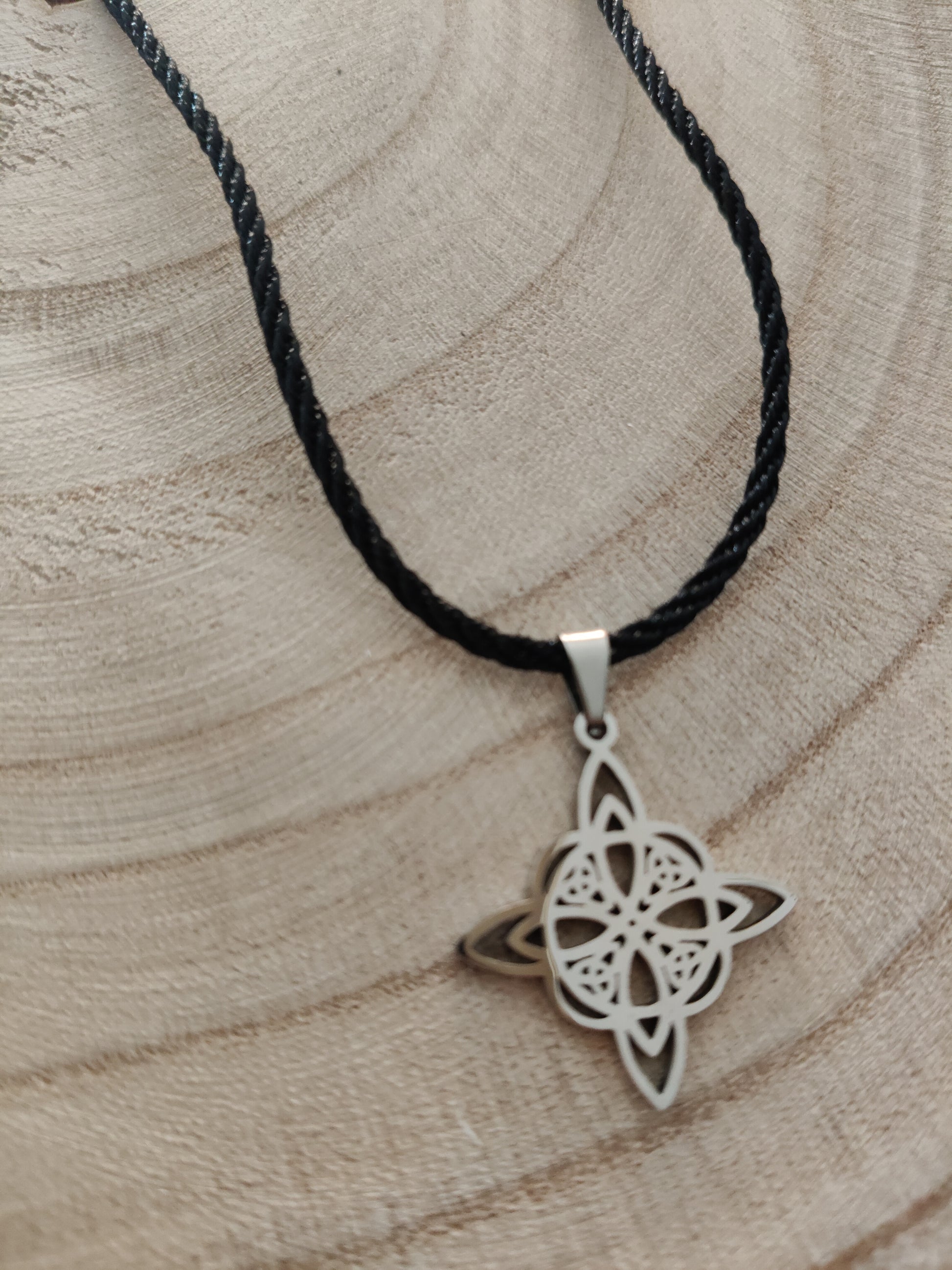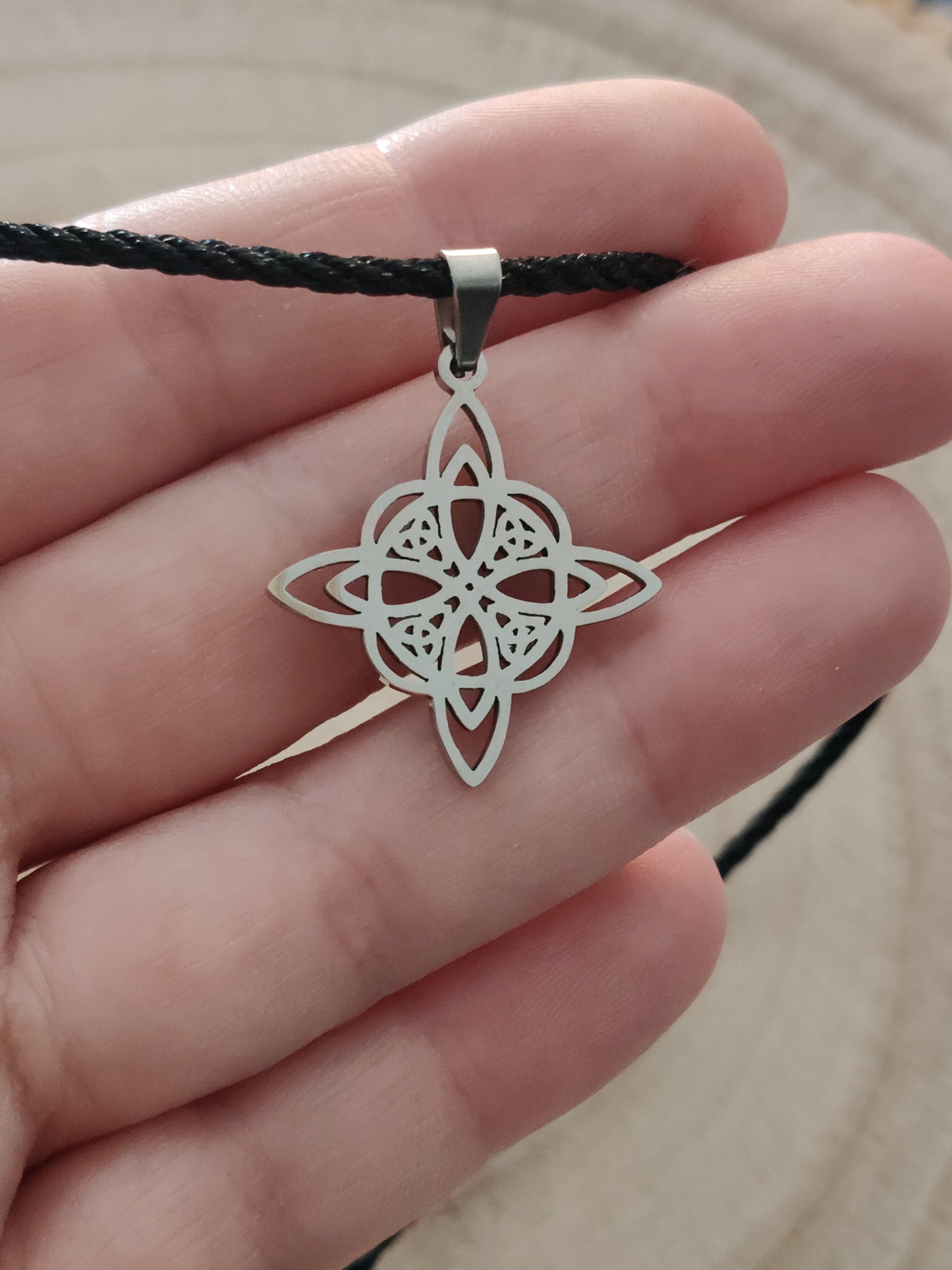 Este colgante nudo de bruja está hecho de acero inoxidable duradero y viene con un cordón trenzado para un estilo único. El diseño del nudo de la bruja y las Triquetas lo hacen perfecto para aquellos interesados en la cultura celta o la magia. Añade un toque místico a tu atuendo con este colgante.
