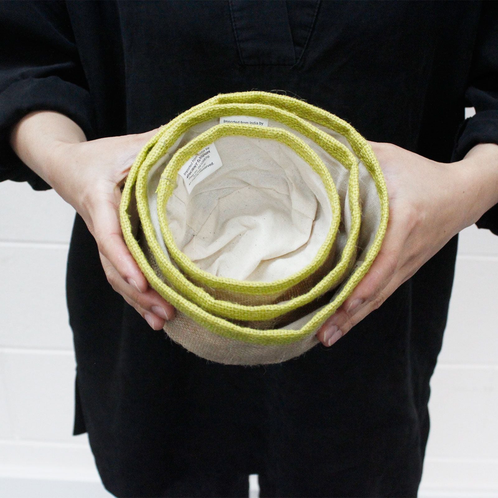 Conjunto de 3 cestas de yute natural - Verde azulado