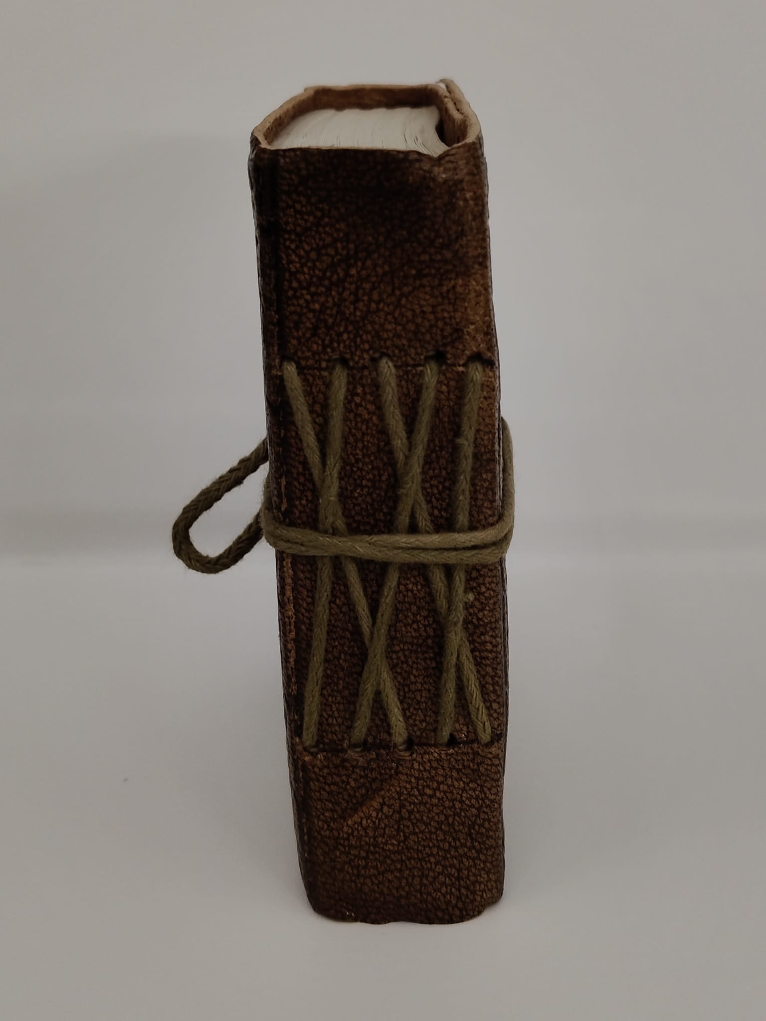 Sus hojas cosidas a mano y el papel tipo antiguo le dan un encanto único, ideal para quienes valoran lo hecho con detalle y alma.