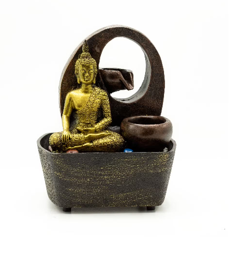 Fuente de agua de interior - Buda dorado y cascada 21.5cm