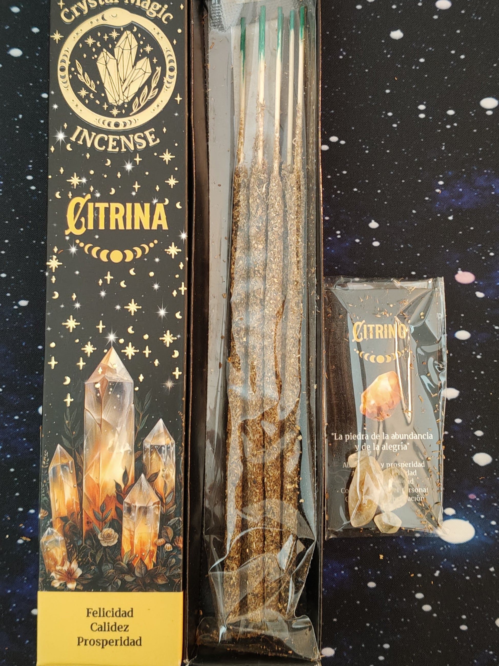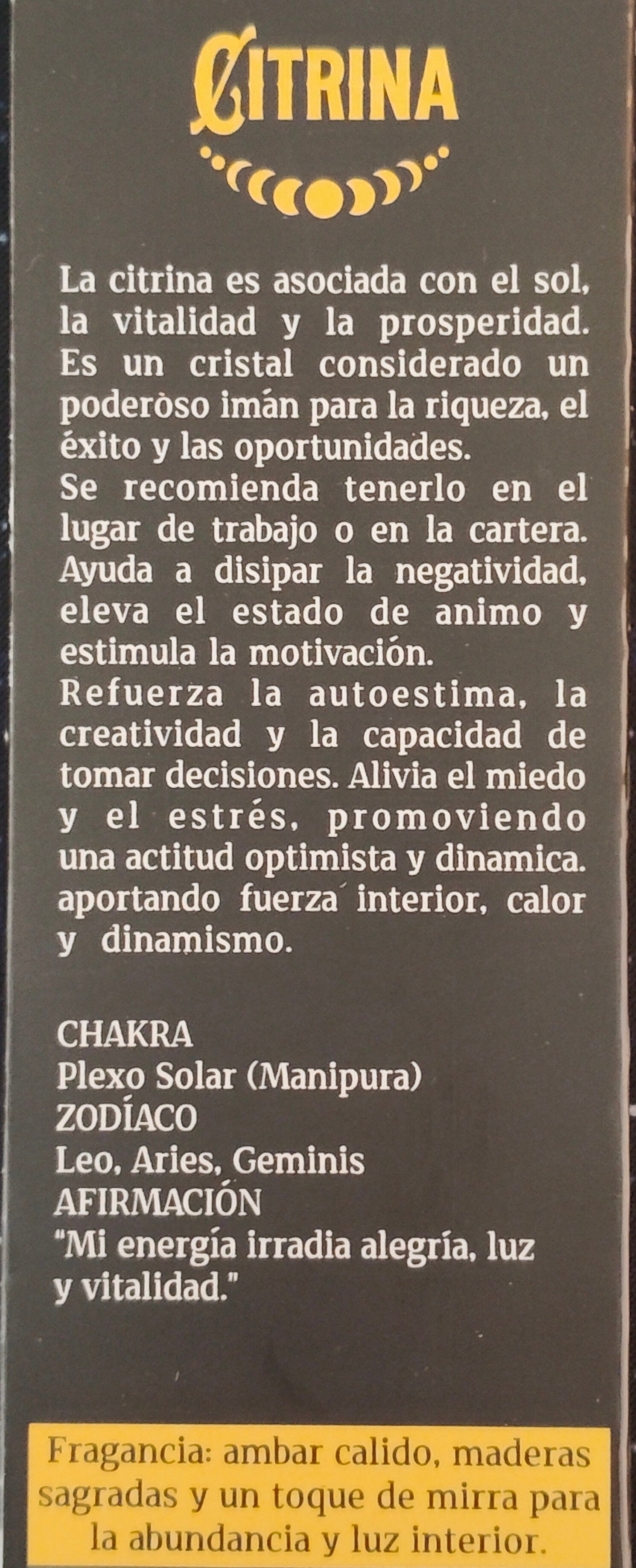 Experimente la cálida y sagrada fragancia del incienso tribal soul con chips de citrino. Con notas de ámbar y madera, un toque de mirra para atraer la abundancia y la luz interior. Disfrute de un ambiente lleno de lujo y exclusividad con este producto único.
