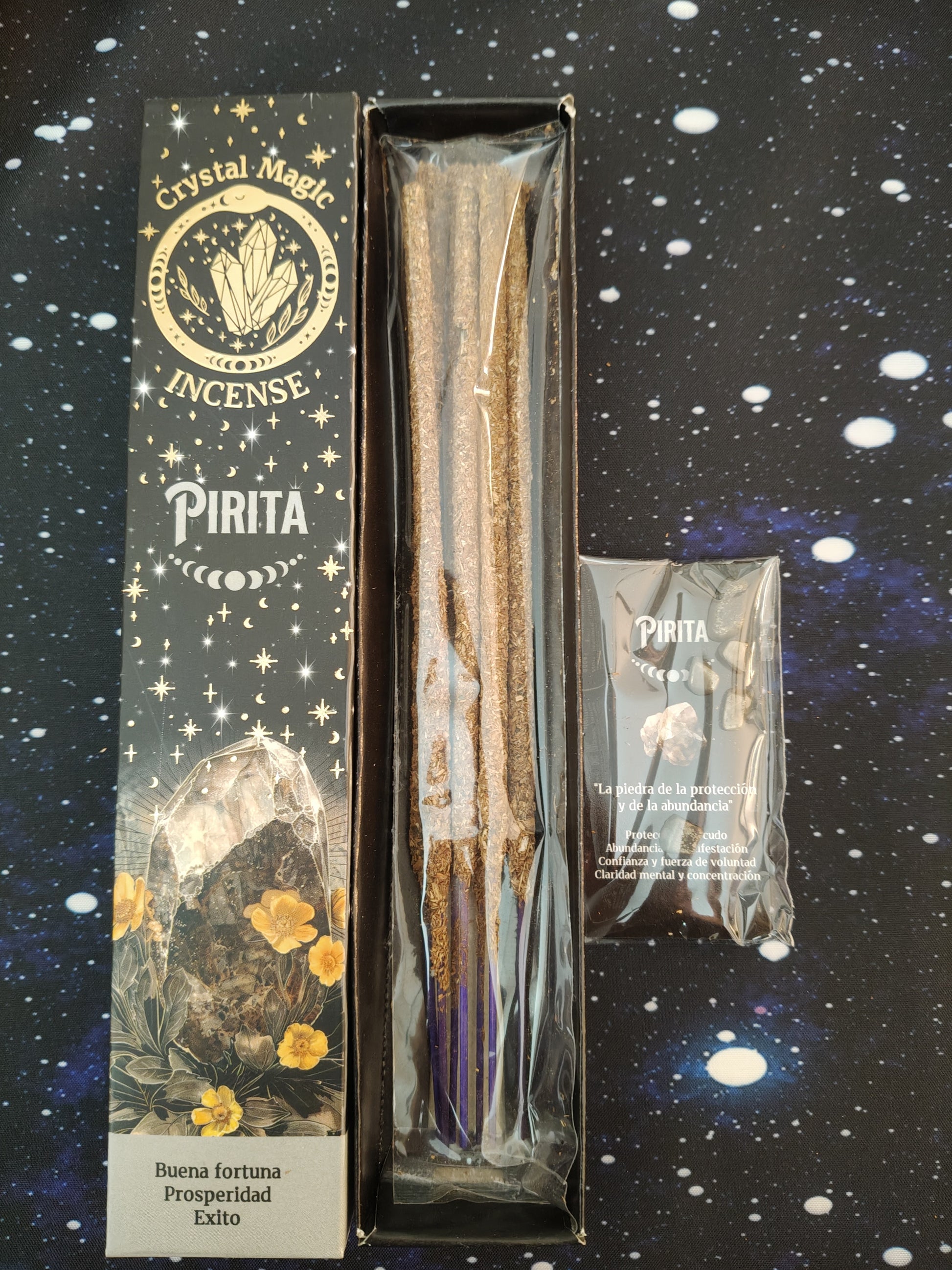 Descubre la magia de la tierra con nuestro incienso tribal soul con chips de pirita. Su fragancia de palo santo, lavanda y ámbar almizclado te transportará a un lugar de paz y serenidad. Convierte tu hogar en un oasis de lujo con los aromas místicos de este incienso.
