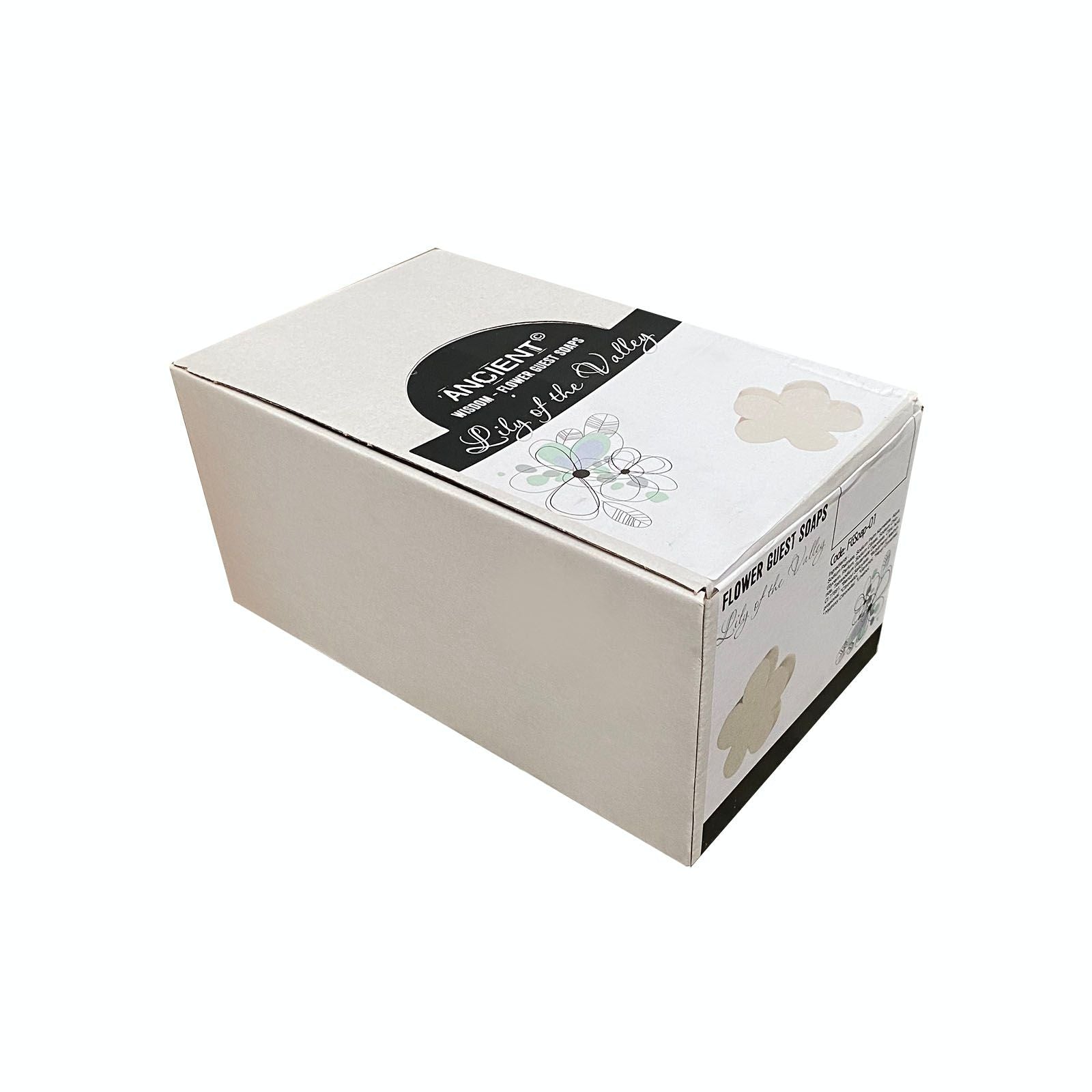 Los jabones para invitados pesan aproximadamente 20 gramos cada uno y miden aproximadamente 45x40 mm.