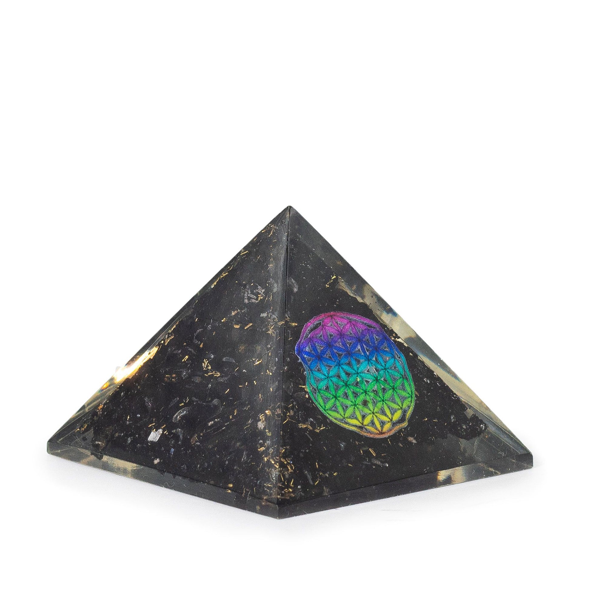 Piramides de orgonita pequeñas 5.5x4.5cm - Flor de la Vida - trozos de tormalina negra