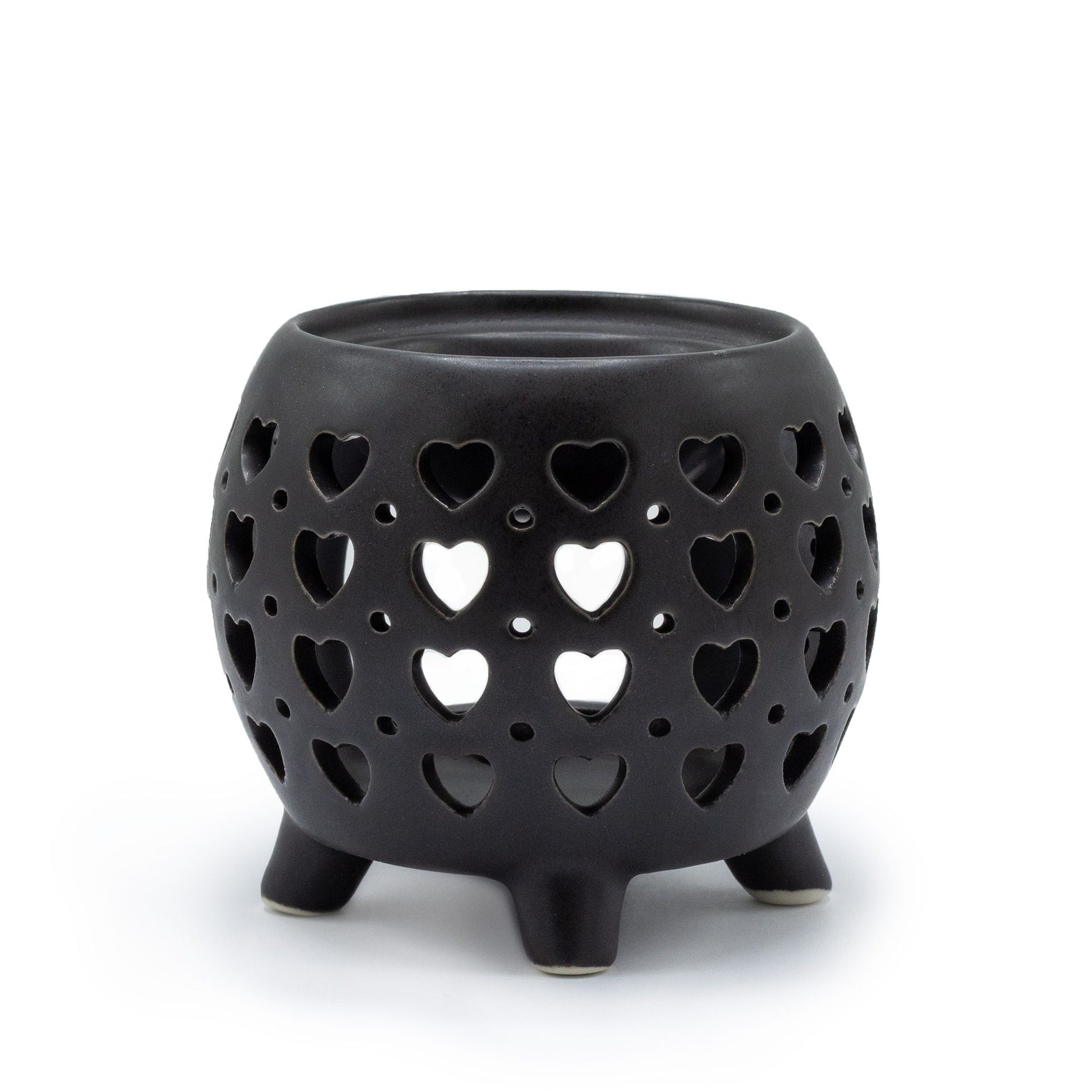 Quemador de Aceite Tipo Maceta Corazones Múltiples - Negro Mate