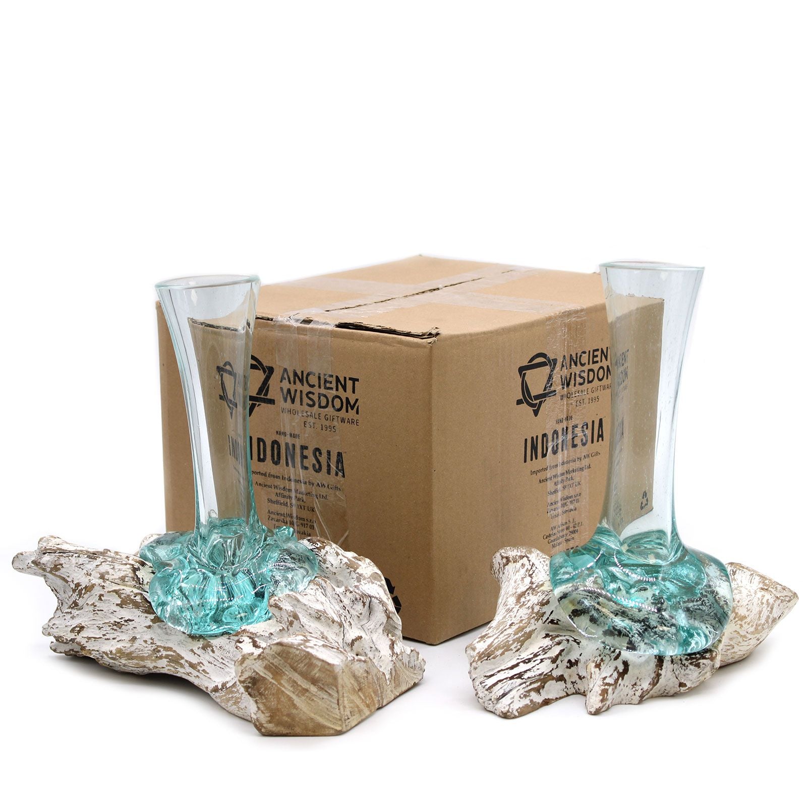Vidrio fundido sobre madera blanqueada - Florero - Mediano